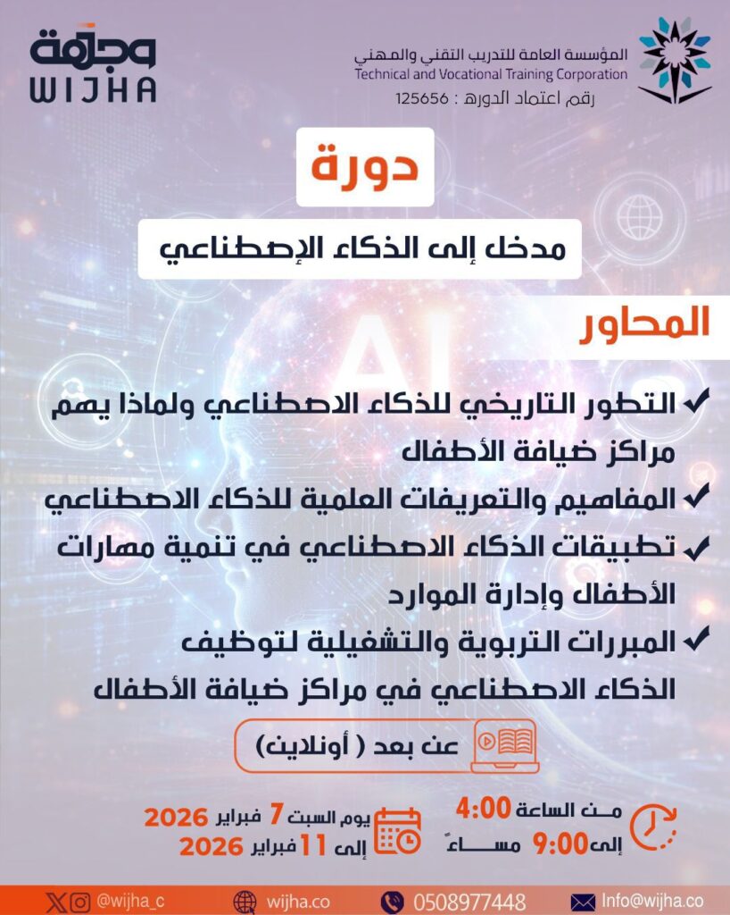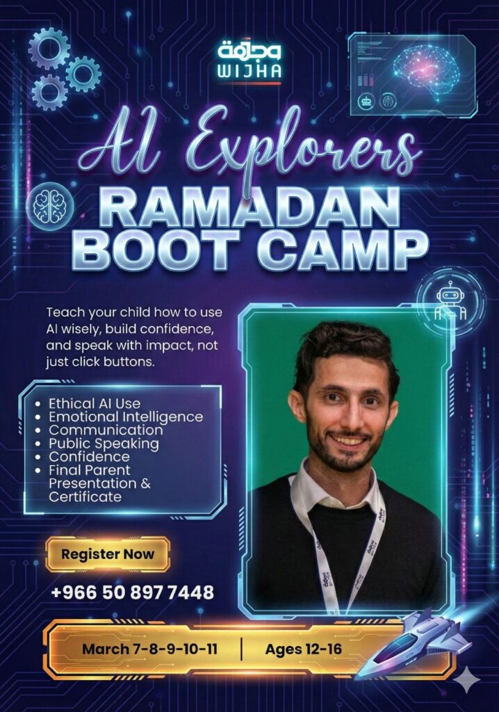 خلِّ ابنك يتعلم الذكاء الاصطناعي بوعي وثقة… مو بس استخدام أدوات، لكن فهم وتأثير حقيقي 👌 في AI Explorers Ramadan Boot Camp بنتعلم:▪️ الاستخدام الأخلاقي للذكاء الاصطناعي▪️ الذكاء العاطفي▪️ مهارات التواصل▪️ التحدث أمام الجمهور▪️ بناء الثقة بالنفس عرض نهائي أمام أولياء الأمور + شهادة حضور 7 – 11 مارس الأعمار: 12 – 16 سنة 📝 للتسجيل عبر […]